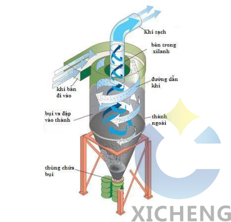 - Nguyên lý: Sử dụng lực ly tâm để tách bụi thô