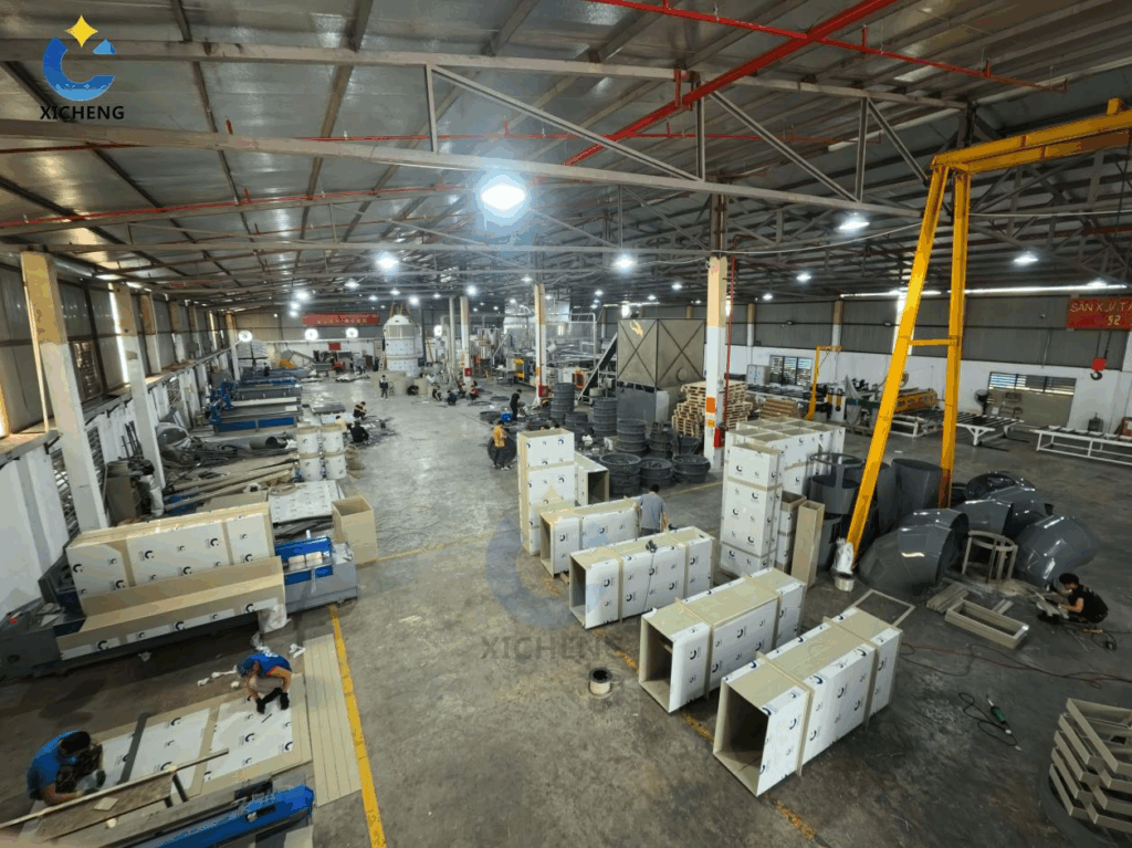✅ 7. Tháp Xử Lý Khí Thải bằng nhựa PP Ứng dụng thực tế trong các ngành công nghiệp